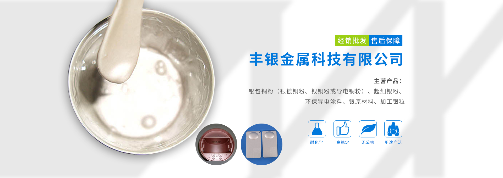 東莞市豐銀金屬科技有限公司科技力量雄厚,公司產(chǎn)品涉及了貴金屬原材料,高科技復(fù)合材料以及互聯(lián)網(wǎng)等高科技領(lǐng)域,有著多年開(kāi)發(fā)經(jīng)驗(yàn)。主營(yíng)產(chǎn)品:銀包銅粉(銀鍍銅粉、銀銅粉或?qū)щ娿~粉)、超細(xì)銀粉、環(huán)保導(dǎo)電涂料、銀原材料、加工銀粒。公司擁有先進(jìn)的金屬粉體生產(chǎn)技術(shù)人才和設(shè)備。產(chǎn)品銷(xiāo)往全國(guó)各地,并出口到韓國(guó),符合國(guó)際ROHS標(biāo)準(zhǔn)。公司本著“誠(chéng)信、合作、發(fā)展”的企業(yè)宗旨。竭誠(chéng)為廣大用戶(hù)和商家提供優(yōu)質(zhì)產(chǎn)品、合理價(jià)格。